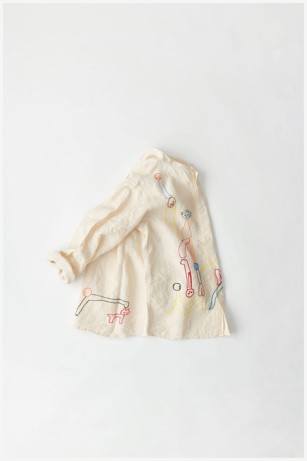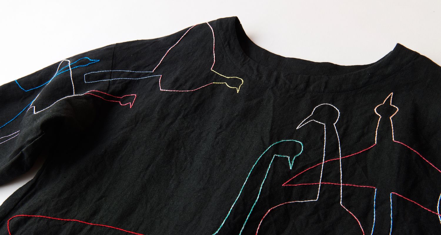 シロ.が一枚一枚作った服に、渡邉知樹が下絵を描き、手刺繍で表現します