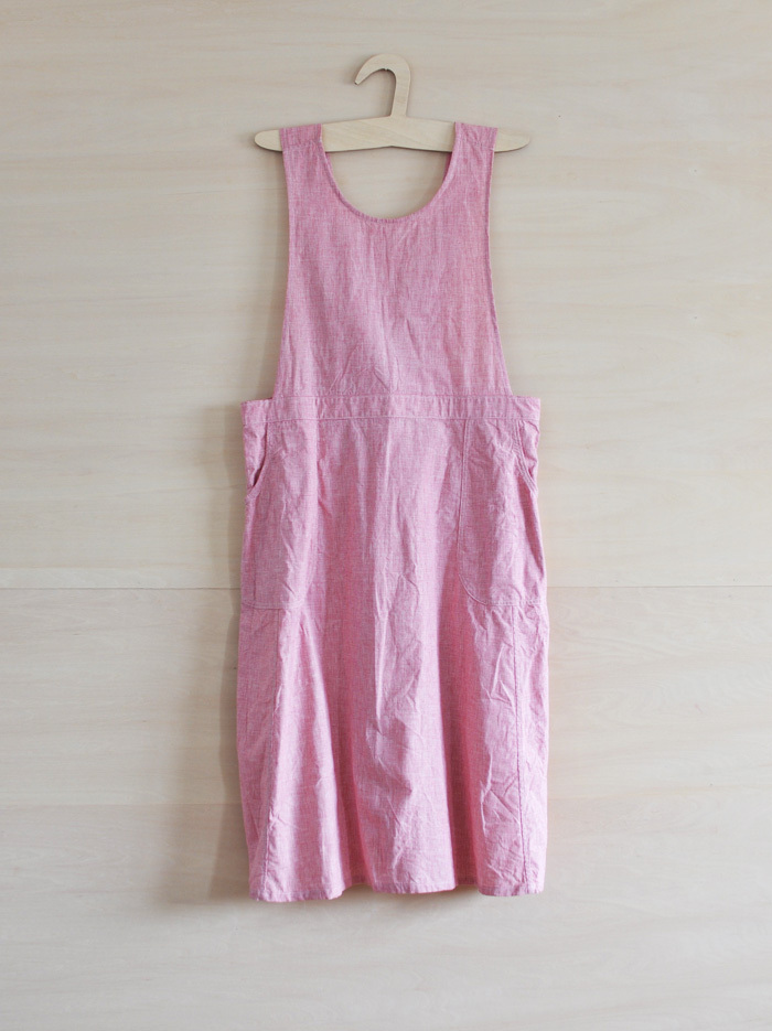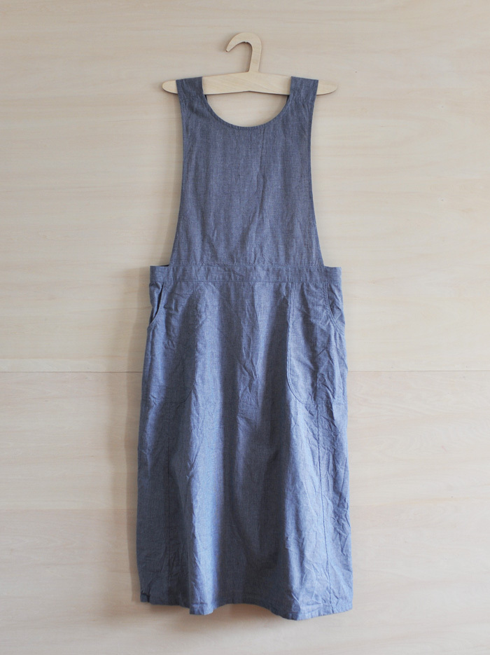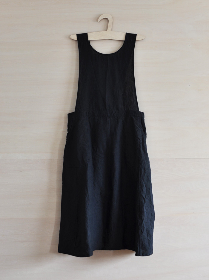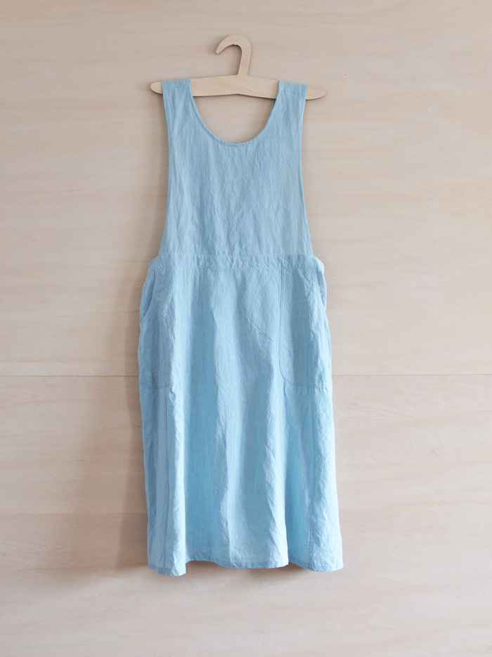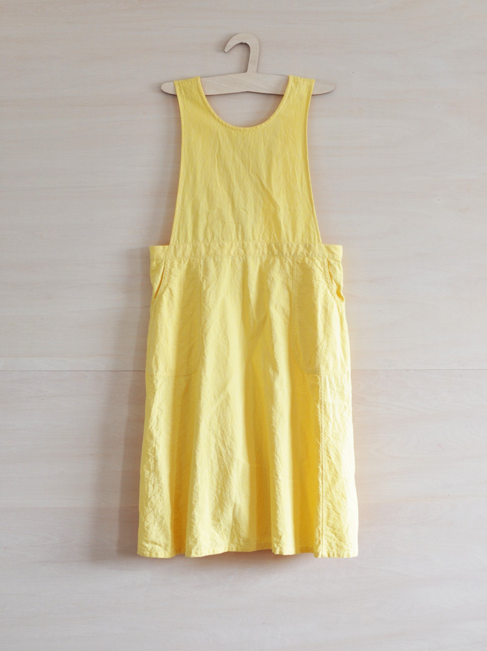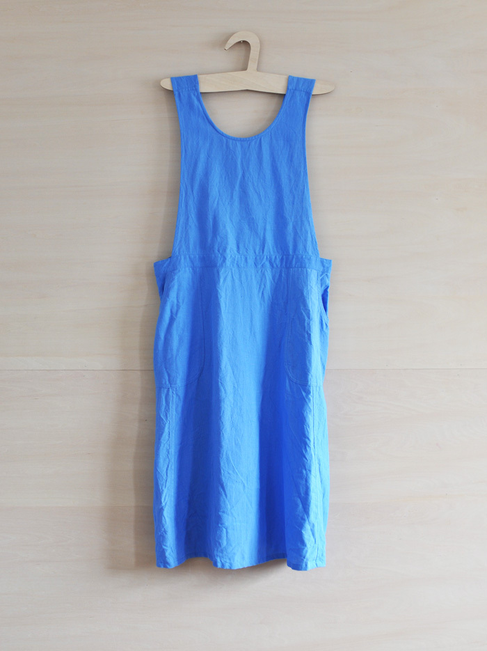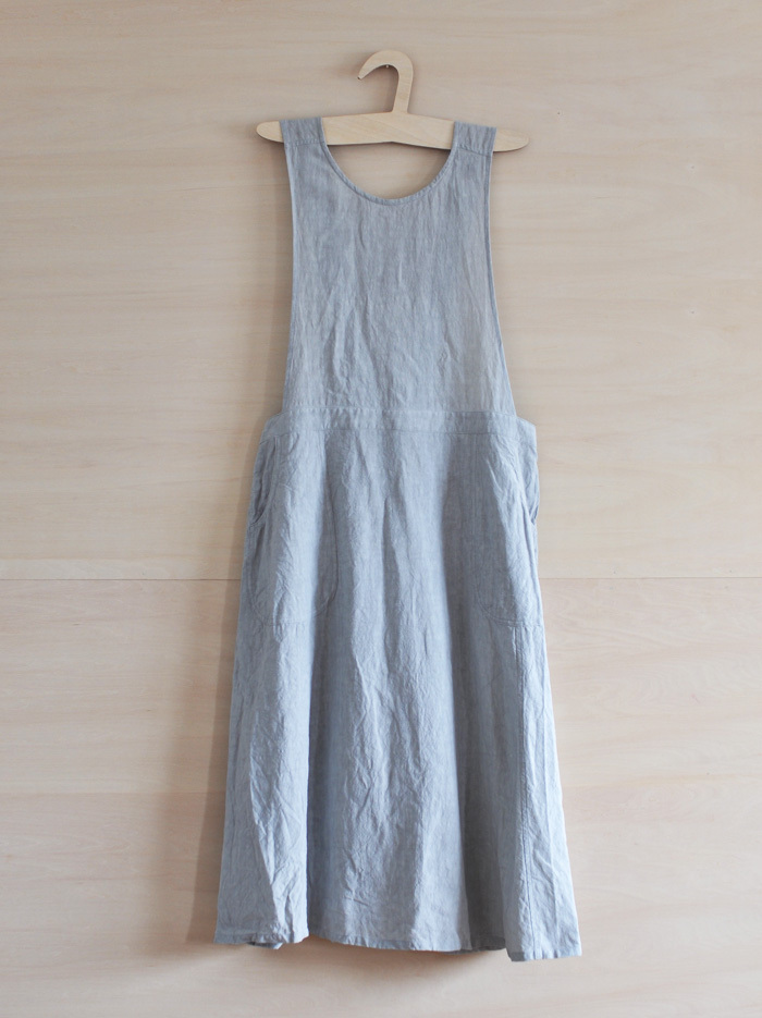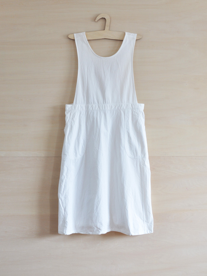 チェコ軍のメディカルエプロンをベースに作ったエプロンです。チェコの多くの女性が使用したことを想像し、チェコの女性の代表的な名前の一つ「hana」をこのエプロンに名付けました。ミリタリーの良いとろころは機能性から生まれるラインの美しさ。随所に工夫がちりばめられています。いいところはそのままに、新たにパターンをつくりました。(デットストックを調べていくと、サイズは大小様々あり、チェコの女性はかなり大柄な方がいたことを連想させてくれます。)あえてオーバーサイズでつくり、ワンピースのようにゆったりと着られるようになっています。また、重ね着しても楽しめそうです。ウエストの左右には、ボタンホールが3箇所ずつあり、ウエストサイズが調整できるようになっています。肩ひもはウエストのボタンホールにつけて固定するため、ストレート、クロスと変えることができます。ボタンを止める位置次第でいろんなニュアンスを楽しめるようになっています。