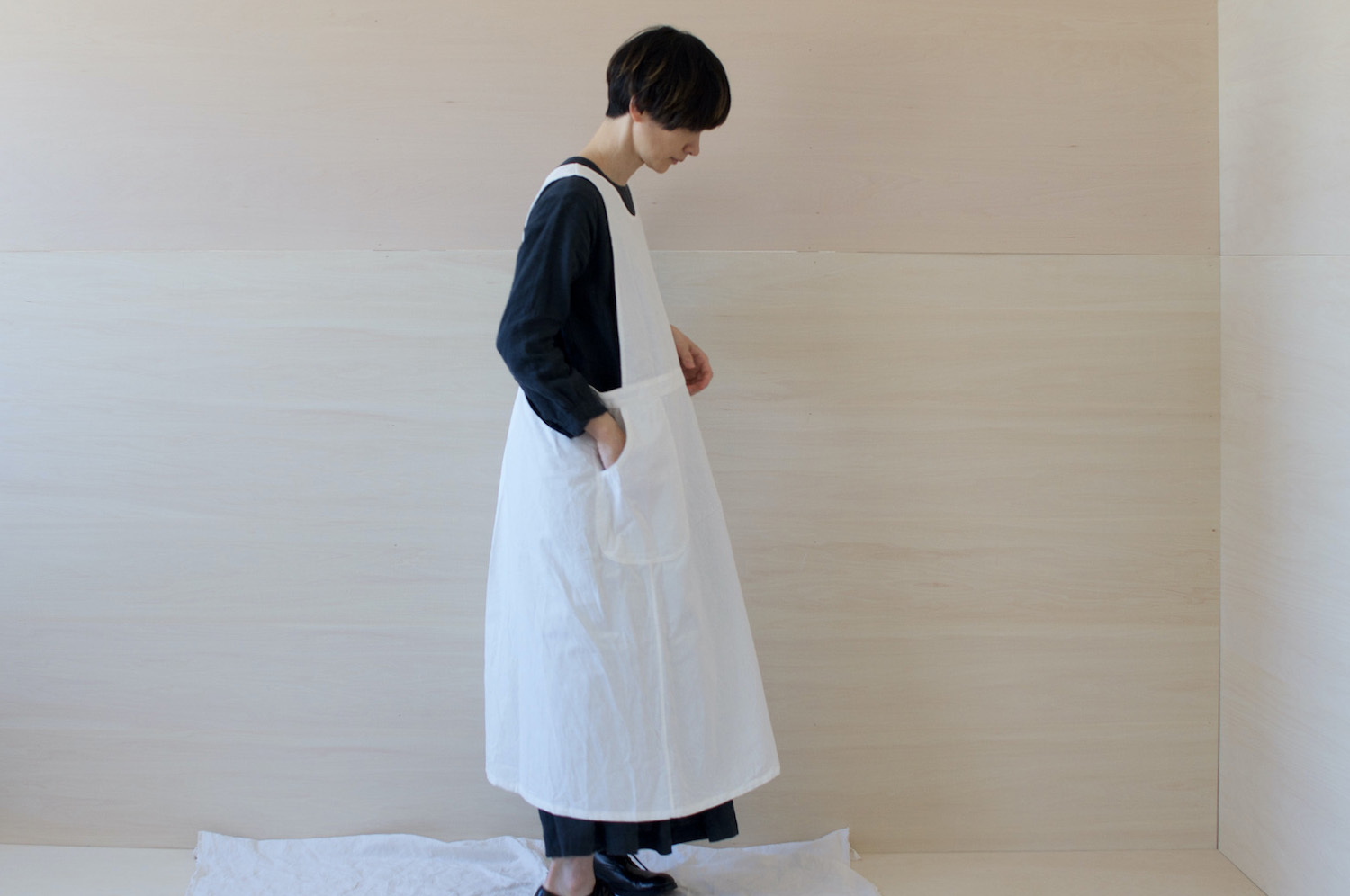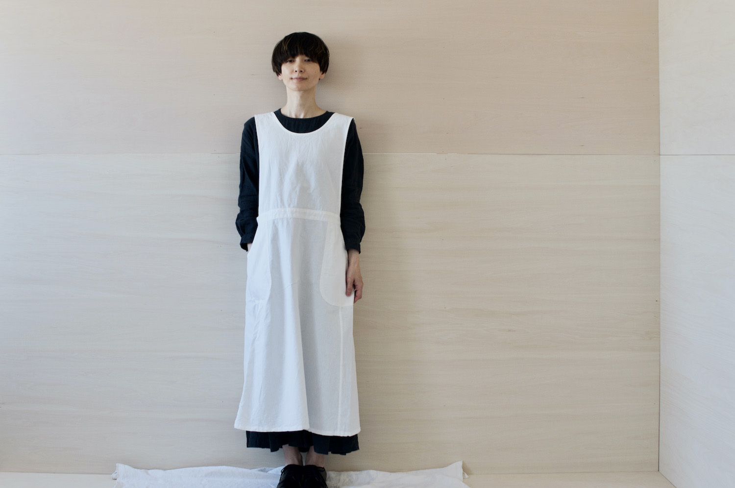 あえてオーバーサイズでつくり、ワンピースのようにゆったりと着られるようになっています。
