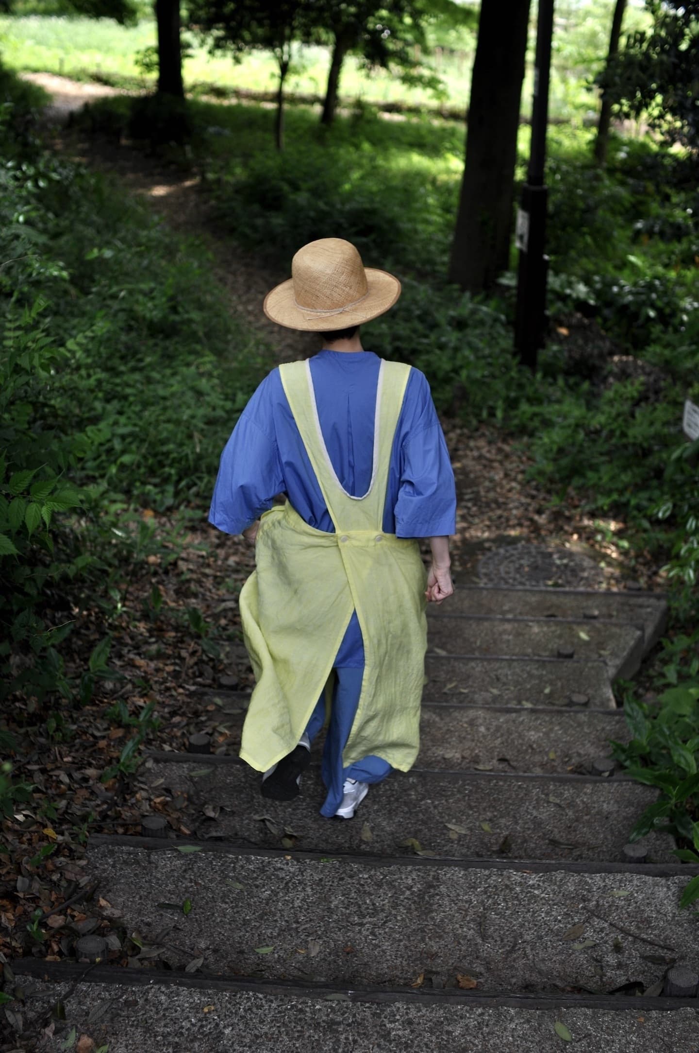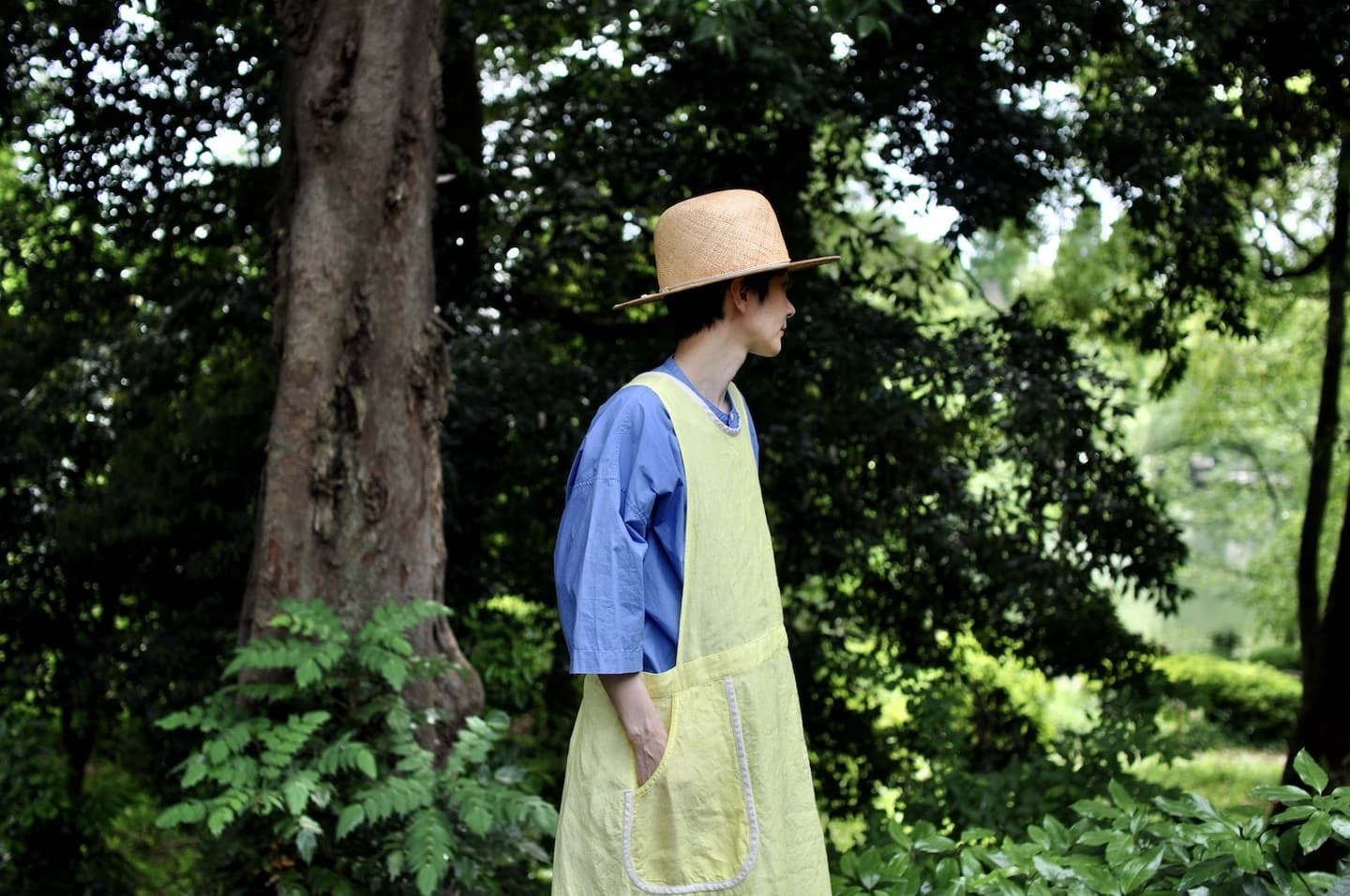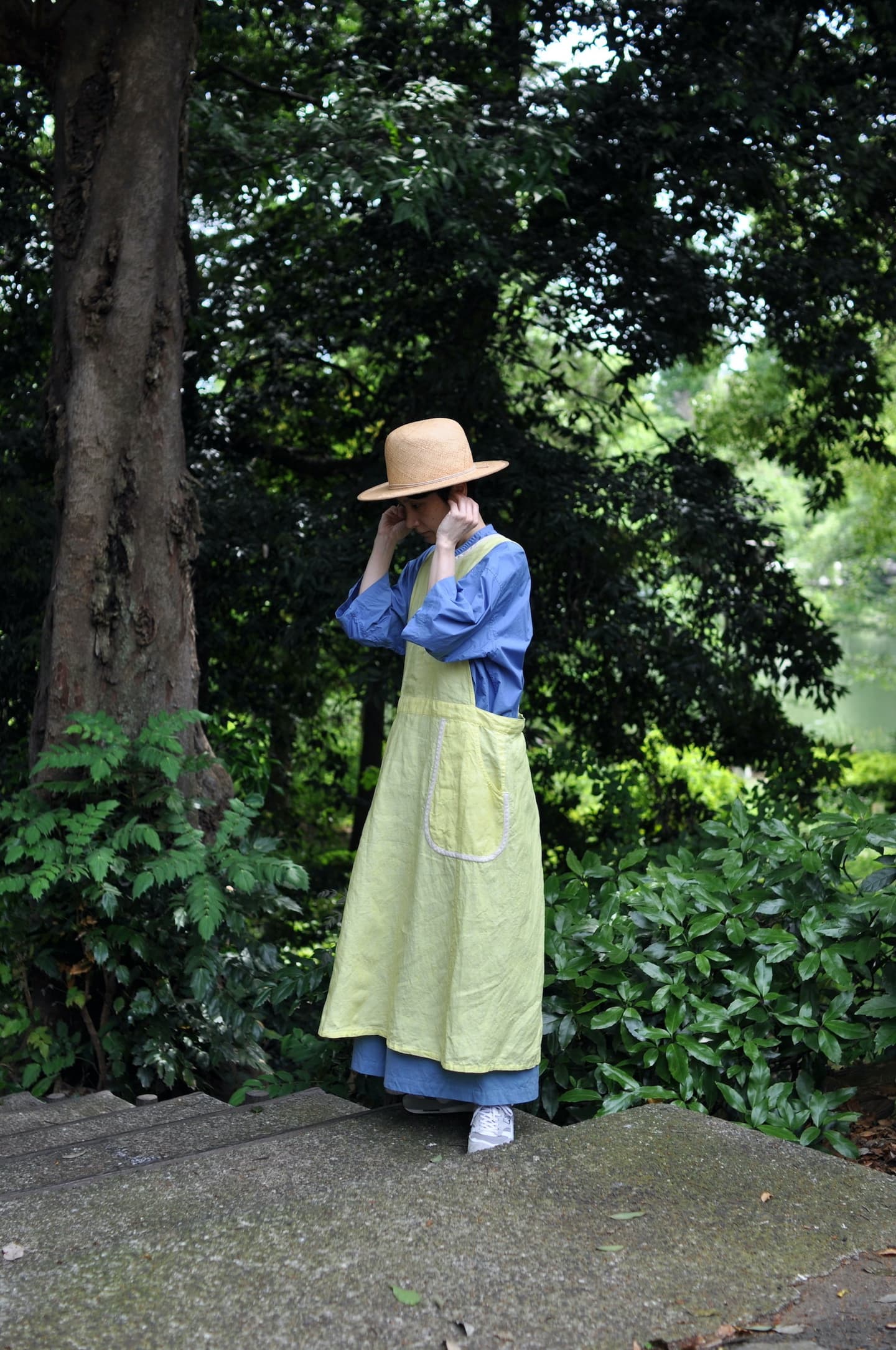 チェコ軍のメディカルエプロンをベースに作ったリネンエプロンです。チェコの多くの女性が使用したことを想像し、チェコの女性の代表的な名前の一つ「hana」をこのエプロンに名付けました。ミリタリーの良いところは機能性から生まれるラインの美しさ。随所に工夫がちりばめられています。いいところはそのままに、新たにパターンをつくりました。(デットストックを調べていくと、サイズは大小様々あり、チェコの女性はかなり大柄な方がいたことを連想させてくれます。)あえてオーバーサイズでつくり、ワンピースのようにゆったりと着られるようになっています。また、重ね着しても楽しめそうです。ウエストの左右にはボタンホールが2つずつあり、肩紐部分についているボタンに留める仕様となっています。